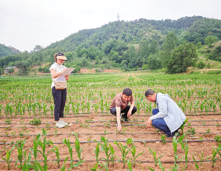 近日,市植保站组织技术人员赴洛南县开展大豆玉米复合种植杂草防治示范药效调查。在示范田块,技术人员详细查看了5个不同药剂处理区域的杂草种类与分布密度,对各样点的残存杂草种类及数量进行了翔实统计,分析显示5种示范药剂处理区域的残存草量均显著减少,杂草防治效果明显优于对照,表明科学防治技术在该复合种植模式中的显著优势。 (本报通讯员 郭帅帅 摄)