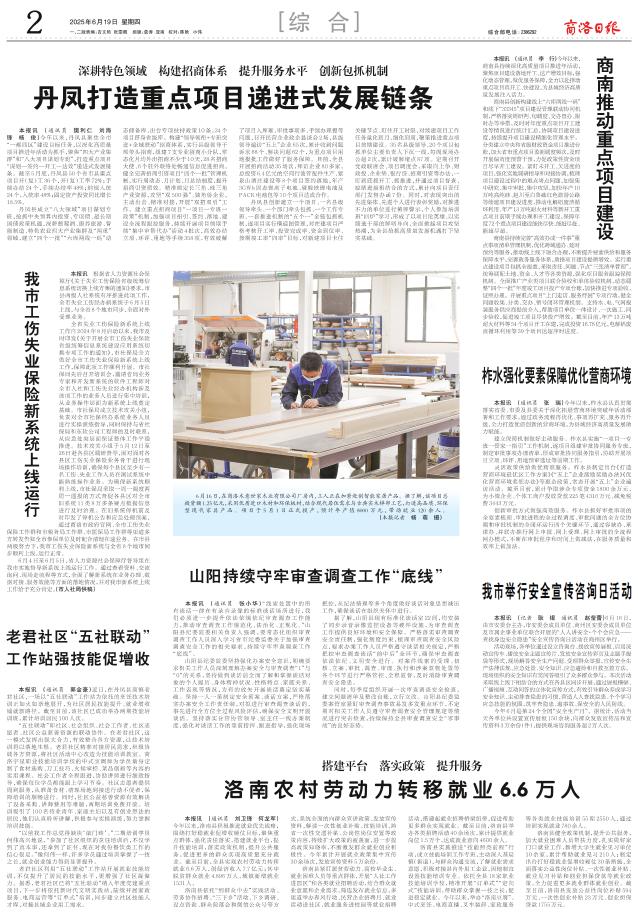 本报讯 (通讯员 樊利仁 刘海锋 杨 俊)今年以来,丹凤县聚焦全市“一都四区”建设目标任务,以深化高质量项目推进年活动为抓手,聚焦“四大产业集群”和“八大项目谋划专班”,打造重点项目“谋划—签约—开工—达效”递进式发展链条。截至5月底,丹凤县50个省市县重点项目开(复)工36个,开(复)工率72%;手续办结24个,手续办结率48%;纳规入统24个,入统率48%;固定资产投资同比增长18.5%。