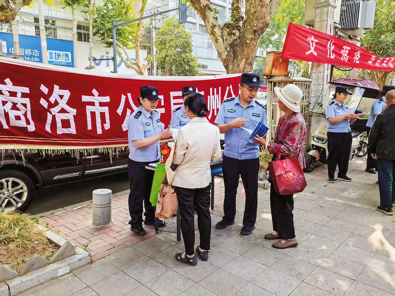 6月16日,商洛市公安局商州分局治安大队在商洛市群众艺术馆前设立集中宣传点,开展公共安全宣传活动,通过多种形式将安全理念播撒到群众心间。 (本报通讯员 周亚军 摄)