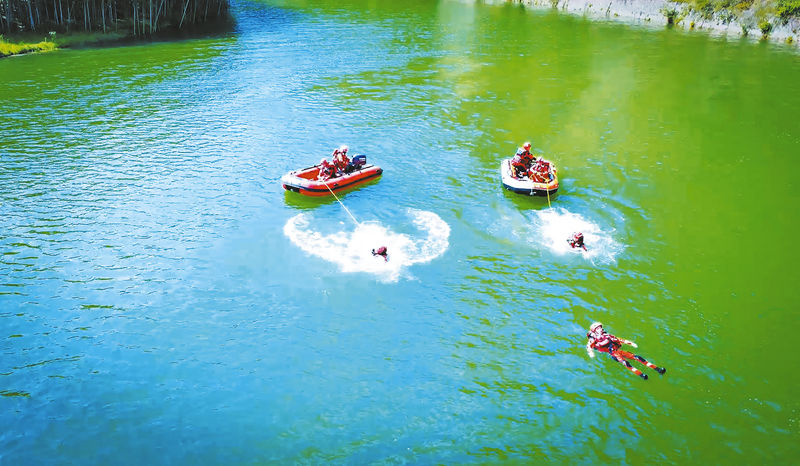 近日,镇安县消防救援大队开展水域救援演练,锤炼队伍在复杂水域环境下的救援本领,全面提升水域救援应急处置能力,切实做好汛期灾害事故防范应对工作。 (本报通讯员 王 磊 摄)