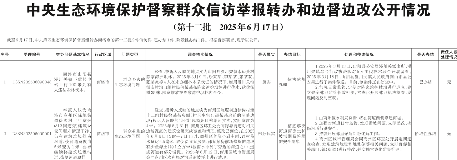 中央生态环境保护督察群众信访举报转办和边督边改公开情况