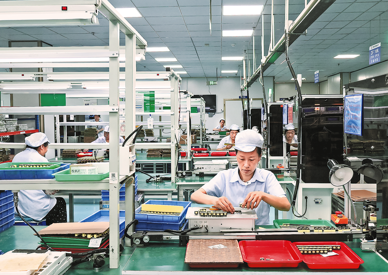 6月18日,走进陕西迈思普电气有限公司,映入眼帘的是一派热火朝天的生产景象,自动化生产线高速运转,工人在各道工序上忙碌作业。据了解,该公司主要生产高频变压器及DC线材,是山阳县主动承接东部产业转移,从东莞引进的劳动密集型电子信息产业,带动就业676人,人均年增收3万元以上,有效解决了当地就业问题。 (本报记者 王天彤 摄)