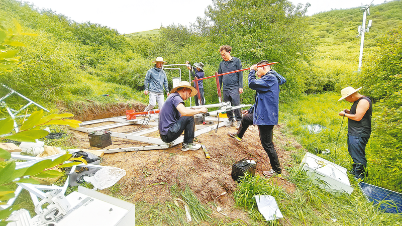 近日,柞水县气象局业务人员克服高温酷暑,在秦楚古道高海拔地区成功安装高山气象站,为气象预报、气候研究、防灾减灾等工作提供重要数据支持。 (本报通讯员 李甄甄 摄)