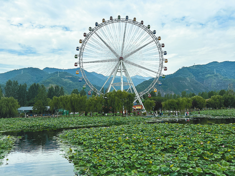盛夏至,赏荷正当时。6月22日,丹凤县棣花古镇的千亩荷塘满塘风光无限,亭亭玉立的荷花次第绽放,美不胜收,游客纷纷前来游玩拍照。 (本报记者 黄朝梅 摄)