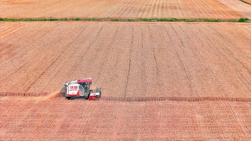 收割机在麦田作业