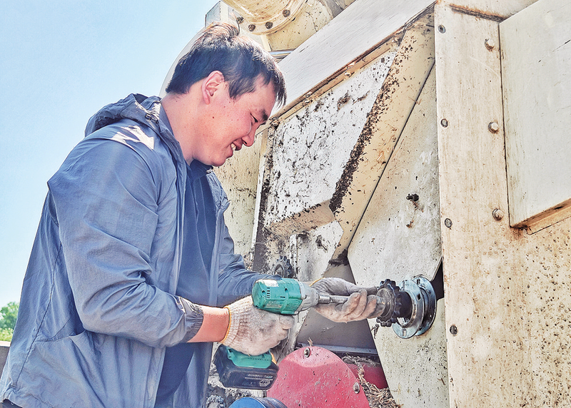 何超在修理收割机