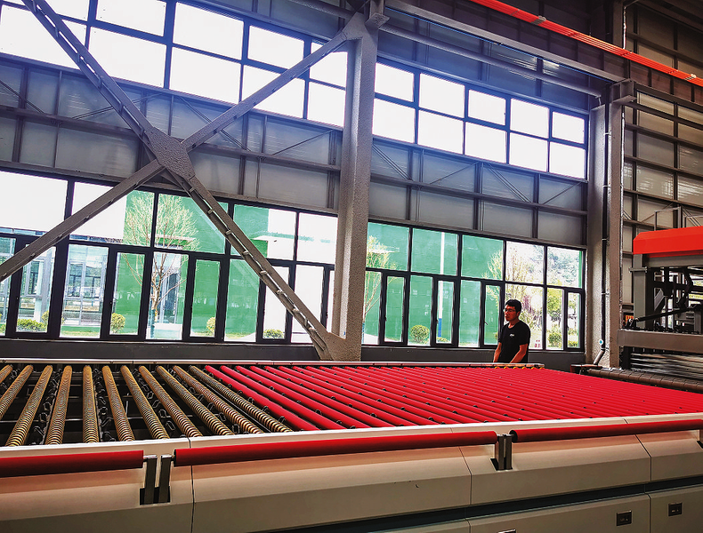 6月20日,位于商洛经开区的陕西煌朝真空玻璃科技有限公司生产车间内,新投产的智能化连续式真空玻璃生产线正满负荷运转。项目完全建成后,预计年产值8亿元、税收8000万元,带动就业150人。 (本报记者 肖 莲 摄)