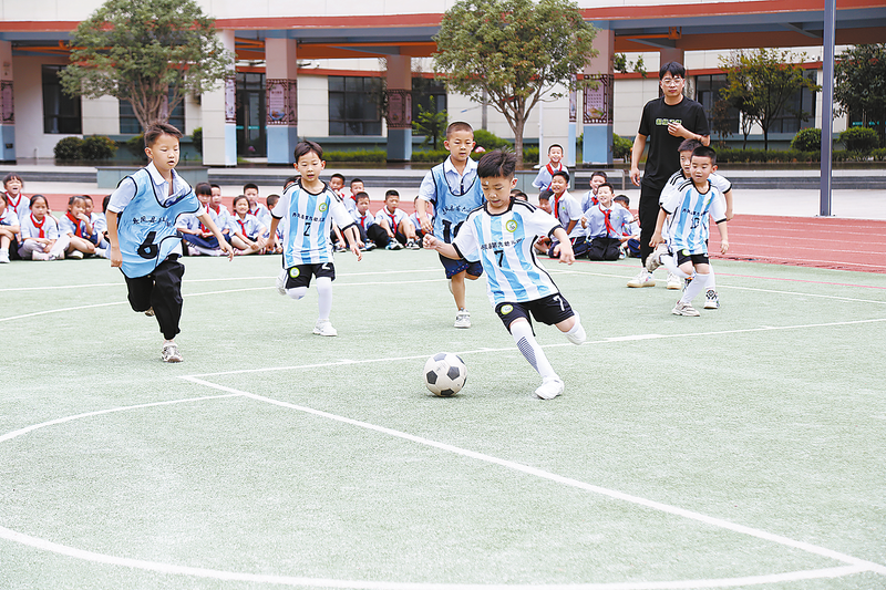 为促进幼儿园与小学衔接,增进学校交流,近日,丹凤县第九幼儿园与县第六小学联合举办了“快乐足球,携手成长”联谊赛,锻炼孩子们的体能与合作能力,搭建幼小互动桥梁,为后续衔接工作奠定基础。 (本报通讯员 赵 洁 摄)