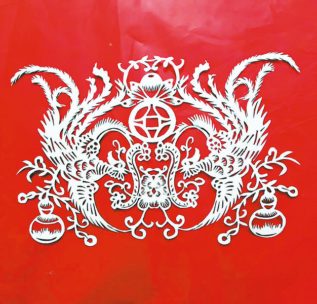 丹凤剪纸历史悠久,在商鞅封邑古城出土的古砖瓦当上,能看到许多与丹凤剪纸风格和技法极为相似的纹饰。丹凤地处“秦头楚尾”,作为南北文化交会之地,这种独特的地理文化背景也孕育出丹凤剪纸独树一帜的艺术风格,既有江南的细腻娟秀,又兼具北方的粗犷大气。在选材上,丹凤剪纸题材十分广泛,既有福禄寿禧、山川树木、花鸟虫鱼,又有神话故事、戏曲人物以及劳动人民的劳动生活场景等。今年3月,丹凤剪纸成功入选商洛市第六批非物质文化遗产名录。