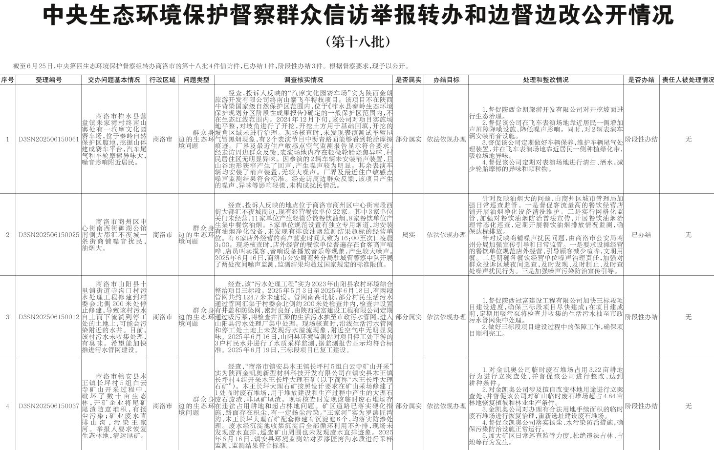 中央生态环境保护督察群众信访举报转办和边督边改公开情况