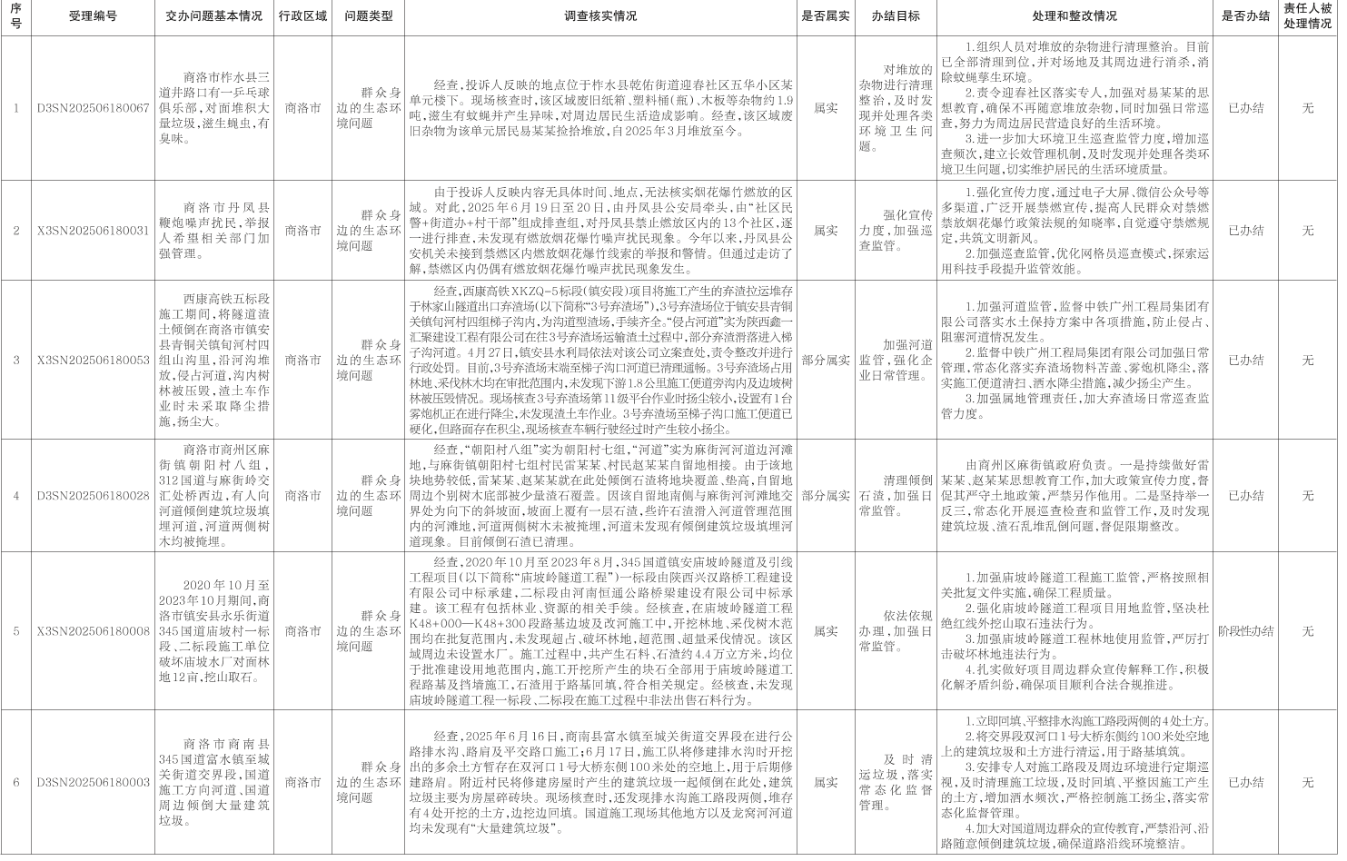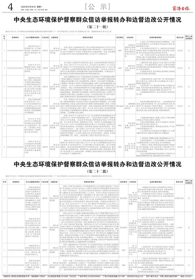 截至6月28日,中央第四生态环境保护督察组转办商洛市的第二十一批6件信访件,已办结5件,阶段性办结1件。根据督察要求,现予以公开。