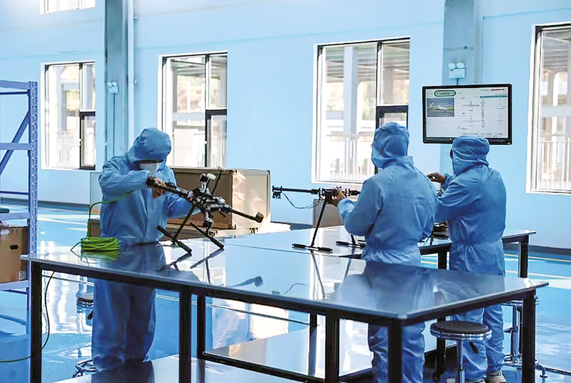 中天禹辰无人机生产线上,工人正在组装配件。本报记者 谢非
