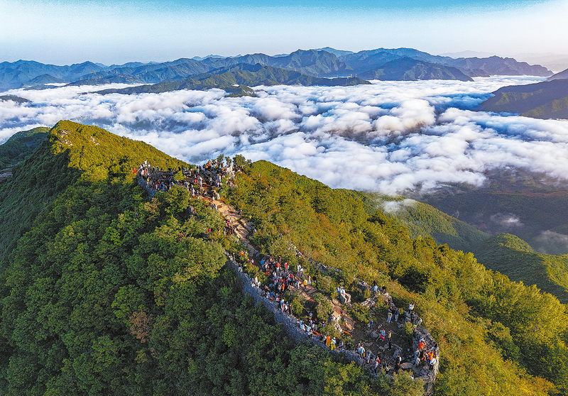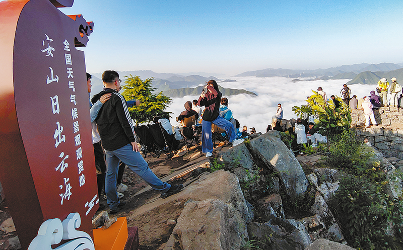 七彩朝霞浸染天际,云海翻腾气吞山河,红日东升金光灿烂……每逢雨后天晴,云雾环绕着苍翠起伏的山峦,层层叠叠,蔚为壮观,这就是镇安县永乐街道安山村海棠山的“云端奇景”。安山村凭着这奇特美景,成为省内外众多摄影和户外爱好者的打卡必选之地。