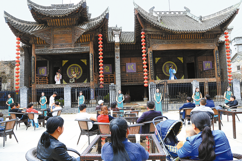 游客在双戏楼前观看表演6月26日清晨,山阳县漫川古镇在晨曦中苏醒——青石板路泛着温润的光,飞檐翘角划破薄雾,“鸳鸯戏楼”前游客举着相机与古建筑合影,北会馆前那株历经260余年风雨的古柏树下,老人们正围着石桌下象棋。今年,漫川关镇古镇社区入选陕西省首批“千万工程”示范村,这座穿越千年的古镇,在“千万工程”滋养下完成“逆生长”,正诉说着文旅融合驱动传统与现代交融的蜕变故事。