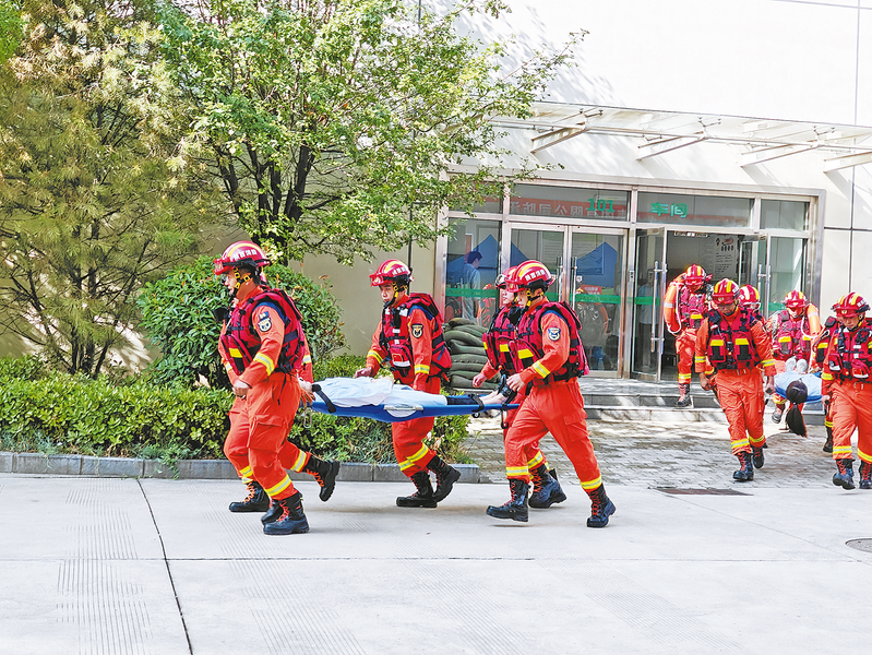 6月26日,商洛高新区2025年防汛应急演练在陕西香菊药业集团有限公司厂区进行。演练模拟了高新区遭遇暴雨红色预警,厂区严重内涝,员工生命财产安全受威胁的紧急情况,设置监测预警、启动响应、“人盯人”防抢撤、抢险排涝4个科目,全面检验了防汛抢险应急预案的实用性与可操作性,锻炼了防汛应急抢险救援队伍实战能力,增强了干部职工防灾减灾避险意识。 (本报记者 程思凡 摄)