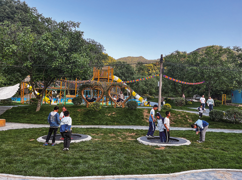 小朋友在研学基地游玩夏日的秦岭深处,群山叠翠,溪水潺潺。走进商州区三岔河镇闫坪村,整洁宽阔的村道、田园综合体的研学基地、波光粼粼的水产养殖园……在这里,白墙黛瓦与繁花绿树相映成趣,邻里互助的欢声笑语与新时代文明实践活动的蓬勃开展交织成曲,崇德向善的新风尚浸润着每一寸土地。