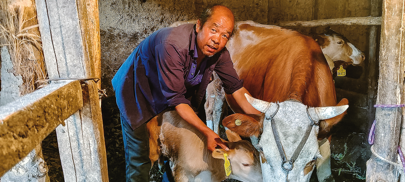 在驾鹿村十组徐金劳家的牛棚里新添的干草散发着清香。他正弯腰仔细检查几头牛的状况,动作熟练而专注。几年前,他还在外地奔波打工,家中日子过得紧紧巴巴。2016年,在镇、村干部的鼓励与帮助下,他鼓起勇气贷款5万元,牵回了最初那珍贵的5头牛。