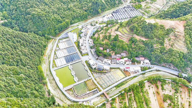 近年来,我市突出生态优势,全力打造以商州为中心的科研、育苗、养殖、加工、营销、品牌“六位一体”的渔业全产业链高质量发展核心区,辐射带动其他6县发展现代设施养殖,着力构建1中心6基地发展格局。图为位于商州区三岔河镇闫坪村的国渔三岔河水产养殖示范园全景。 (本报记者 杨 鑫 摄)