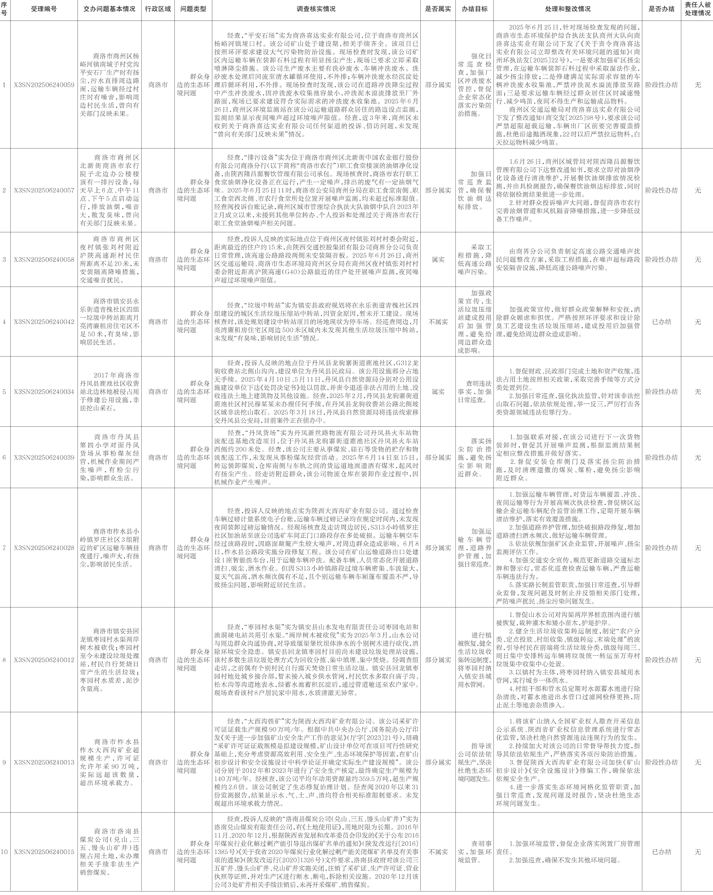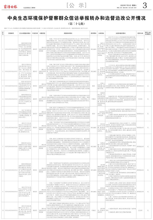 截至7月4日,中央第四生态环境保护督察组转办商洛市的第二十七批10件信访件,已办结2件,阶段性办结8件。根据督察要求,现予以公开。