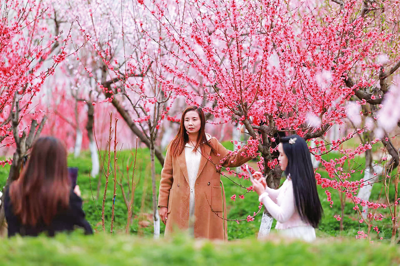 桃花盛开时,游客在竹林关桃花谷拍照打卡。在丹凤县竹林关镇,四季皆景,步步入画。万树桃花绽放的粉红世界引得游人如织,向日葵花海随风摇曳成了新的网红打卡地,茶园里游客与茶农一同体验采茶品茗的乐趣,一座座曾因村民外出务工而沉寂的老宅,如今焕然一新,成为游客争相入住的精品民宿……
