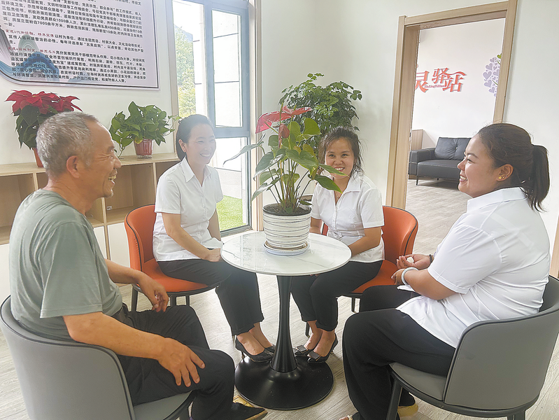 7月2日,在新改建的商州区夜村镇代街村委会办公大厅内,沙发、茶水吧、图书角、心灵驿站等一应俱全,村干部正在为群众讲解惠民政策。今年以来,代街村大力实施办公环境亲民化改造,按照空间布局更优化、功能配置更完备、环境氛围更温馨、载体活动更丰富的基本要求,畅通服务群众“最后一米”,使人情味浓了、服务性更强了。
