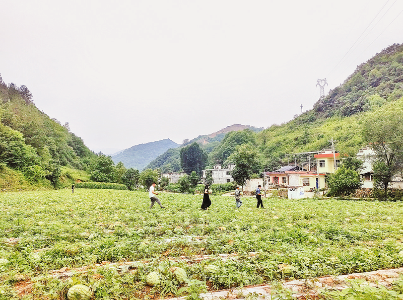 盛夏时节,笔者走进商南县清油河镇吊庄村的瓜田,圆滚滚、翠绿油亮的西瓜在藤叶间若隐若现。村民穿梭其中,通过敲一敲、看一看的方式,挑选出成熟优质的西瓜轻轻摘下,一派忙碌的丰收景象。