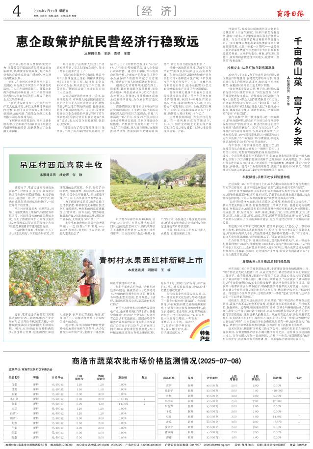 商洛市蔬菜农批市场价格监测情况(2025-07-08)
