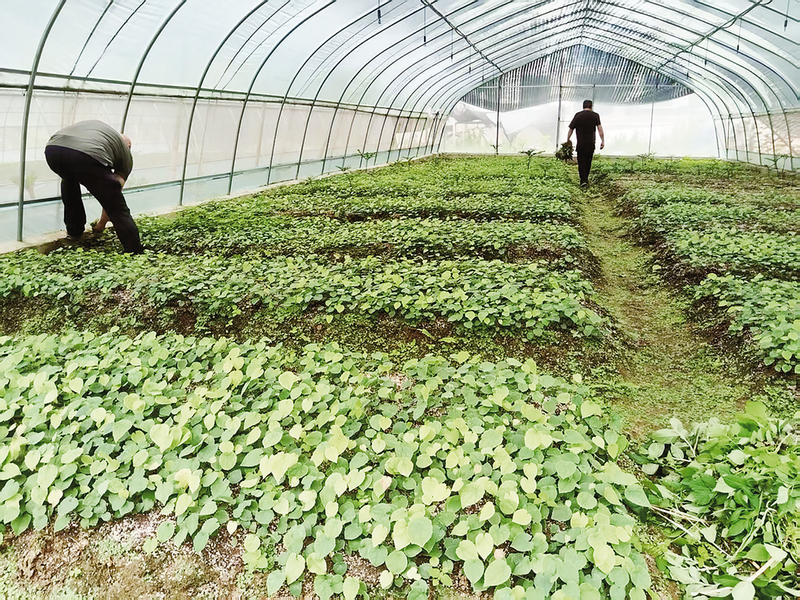 7月9日,镇安县庙沟镇双喜村龙凤沟中药材育苗大棚里,村民正在进行淫羊藿、五味子药苗除草作业。近年来,双喜村积极招引致富能人返乡创业,种植中药材500亩,带动80户群众种植五味子、淫羊藿,户均年增收3万余元。