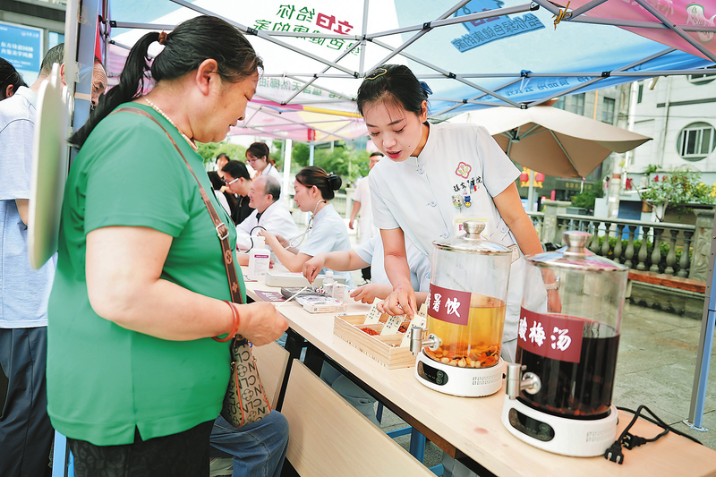 7月10日,镇安县医院在中心广场设立的三伏贴贴敷点现场人头攒动,医护人员细致地为市民问诊、把脉、观舌,依据辨证施治原则,精准选取对应穴位进行药物贴敷。三伏贴是一种中医外治法,利用一年中最热的三伏天,将特制中药贴敷于特定穴位,以激发经络气血、调整阴阳平衡,从而预防和治疗冬季常见疾病。因其操作简便、副作用少、疗效确切,已成为群众受欢迎的保健疗法之一。 (本报通讯员 符明月 摄)