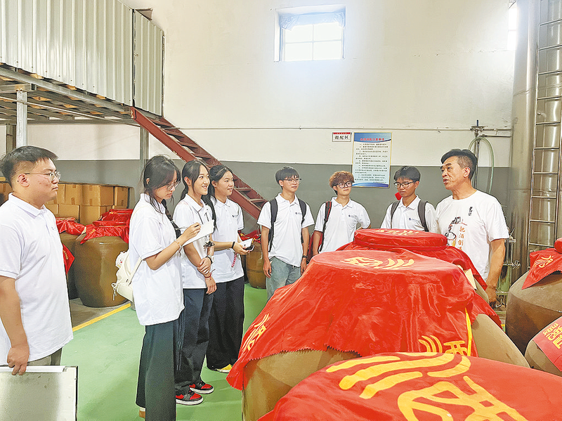 7月7日,西安石油大学暑期“三下乡”社会实践团走进柞水县凤凰镇非遗古法酿酒作坊,沉浸式体验非物质文化遗产魅力。实践活动让青年学子对传统工艺保护有了更深的认识,也通过和非遗传承人的深入交流,为古法酿酒工艺的创新搭建了桥梁。 (本报记者 马泽平 摄)