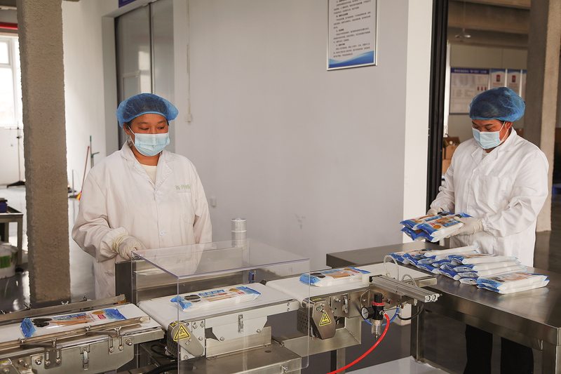7月11日,商州区郎缘香食品科技有限责任公司的挂面车间里正在生产菌菇挂面。该生产车间位于沙河子镇红光社区,以食用菌特色食品挂面加工为主导、年产2000吨挂面,有效推动商洛食用菌产业的深加工和特色农副产品发展。 (本报记者 王孝竹 摄)