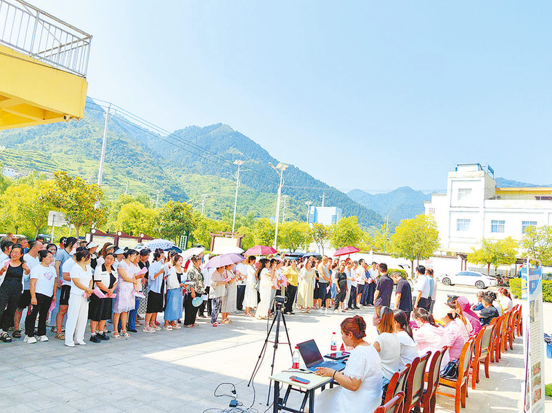 7月10日至11日,由陕西省舞协、商洛市文联主办,商洛市舞协承办的陕西省舞协文艺“六进”志愿服务系列活动在洛南县举行。活动通过舞蹈创编理论讲解、优秀作品赏析、现场示范教学等环节,让群众了解了舞蹈编排技巧和表演要领,丰富了群众的精神文化生活。 (本报记者 方 方 摄)