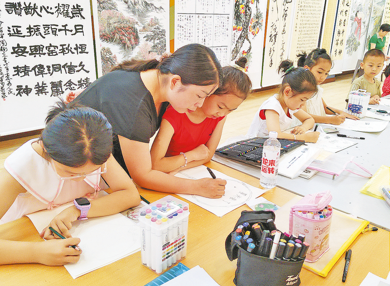 7月14日,商南县文化馆开展暑期少儿公益艺术培训活动,让少年儿童免费享受优质的公共文化服务,培训内容涵盖民歌、书法、舞蹈、美术等多个门类。 (本报记者 胡 蝶 摄)