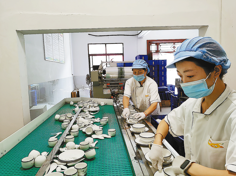 在生产线的另一端,一组村民聂达梅正在把消毒封装后的碗碟整齐地装进配送箱。50多岁的她,家中还有一个孩子在上学,出去打工总被人家以年龄太大为由婉拒。“没想到我这么大年龄了,还能在家门口有一份像样的工作。”她笑着说,眉眼间尽是岁月的刻痕,“靠自己双手挣钱,一年下来能有2万多元,心里踏实得很。”语气中却带着一股不服输的劲头。