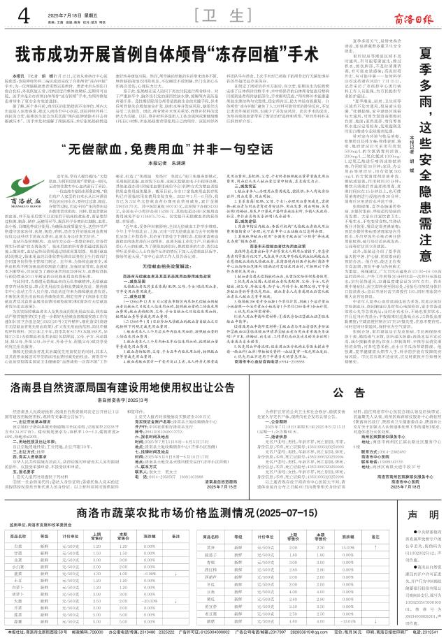 商洛市蔬菜农批市场价格监测情况(2025-07-15)