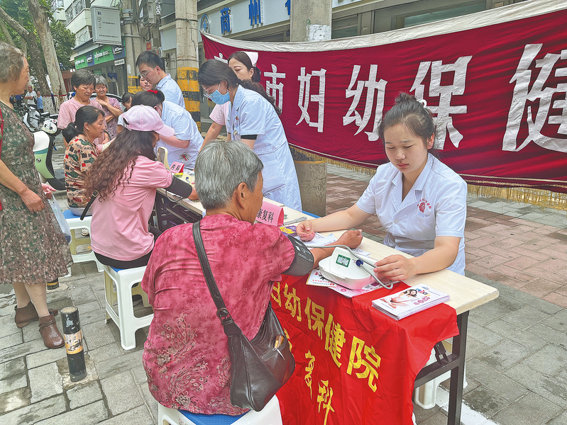 7月17日,商洛市妇幼保健院专业团队走进商州区城关街道张坡社区开展义诊活动,为妇女儿童及社区居民送上健康关怀与专业指导。 (本报记者 李少虎 摄)