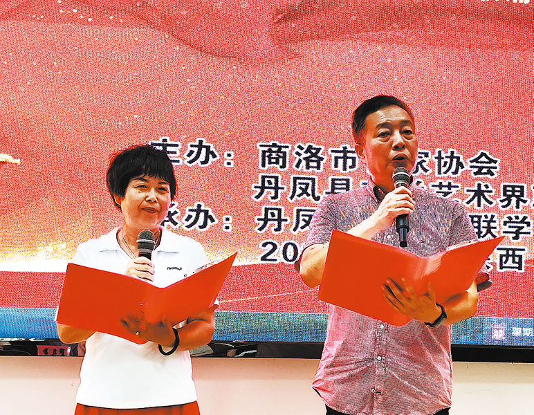 为传承红色基因、弘扬抗战精神,7月18日,市作协联合丹凤县文联、县诗词楹联学会等举办“山河印记·诗颂峥嵘”纪念中国人民抗日战争胜利80周年诗歌诵唱会。 (本报记者 贾书章 摄)