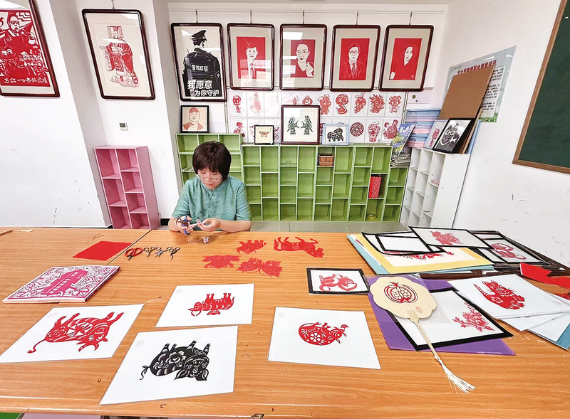 为了将商州剪纸传承下去,王利娜通过创设学校剪纸社团,教授100多名学生学会了剪纸,她工作室墙上的塑封十二生肖就是孩子们的作品。“今年的学生特别优秀,很有绘画天赋和创造力。尤其是一些男生,因为自主性强,很会创新。”