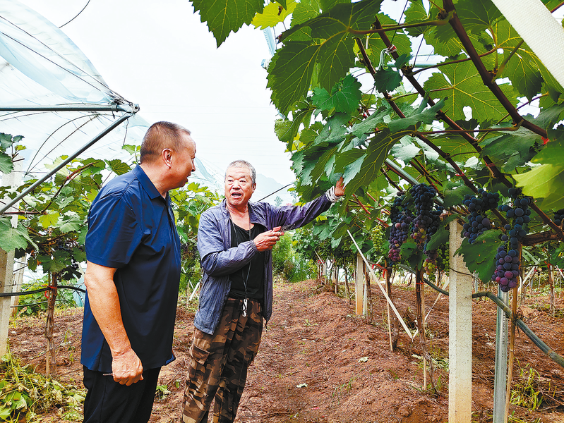 盛夏时节,丹凤县棣花镇许家塬村夏黑葡萄迎来成熟采摘期,清甜的滋味吸引客商和市民前来采摘品尝,成为当地群众增收致富的“甜蜜产业”。据悉,今年丹凤县水杂果可采摘面积2.28万亩,全年总产量预计达1.48万吨、产值9000万元,水杂果已成为该县乡村振兴的“致富果”。 (本报通讯员 冯 清 摄)