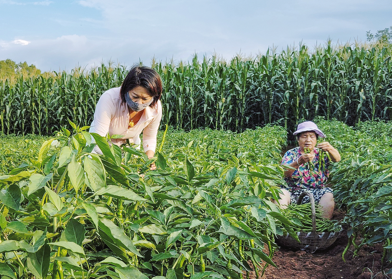 7月22日,洛南县景村镇御史村群众正在田间采摘螺丝椒。据了解,该村共种植辣椒200多亩,亩收入可达8000多元,主要销往西安、湖南、湖北等地。 (本报记者 肖 云 摄)
