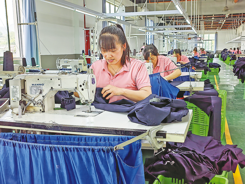今年以来,洛南县加大就业创业政策宣传,积极搭建就业平台,建设家门口就业驿站,培育壮大社区工厂,吸纳安置更多群众实现就近就地就业。图为近日古城镇易地搬迁小区群众在洛南县金翼服装有限公司加工服装。(本报通讯员 刘卫锋 摄)