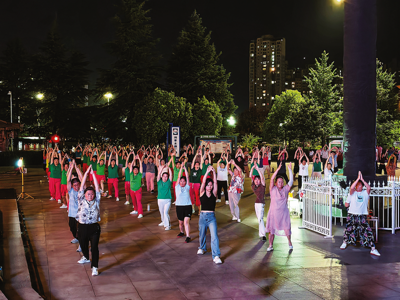 随着炎炎夏日的来临,城区的夜晚逐渐热闹起来,形式多样的夜间健身活动在公园、广场火热开展,成为城市夜晚亮丽的风景线。