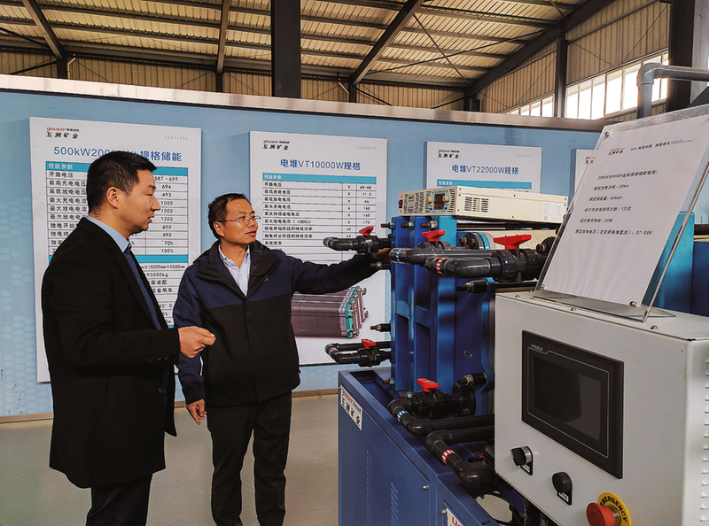 刘彦峰博士(左)参观全钒液流电池示范项目并进行技术交流本报记者 胡 蝶