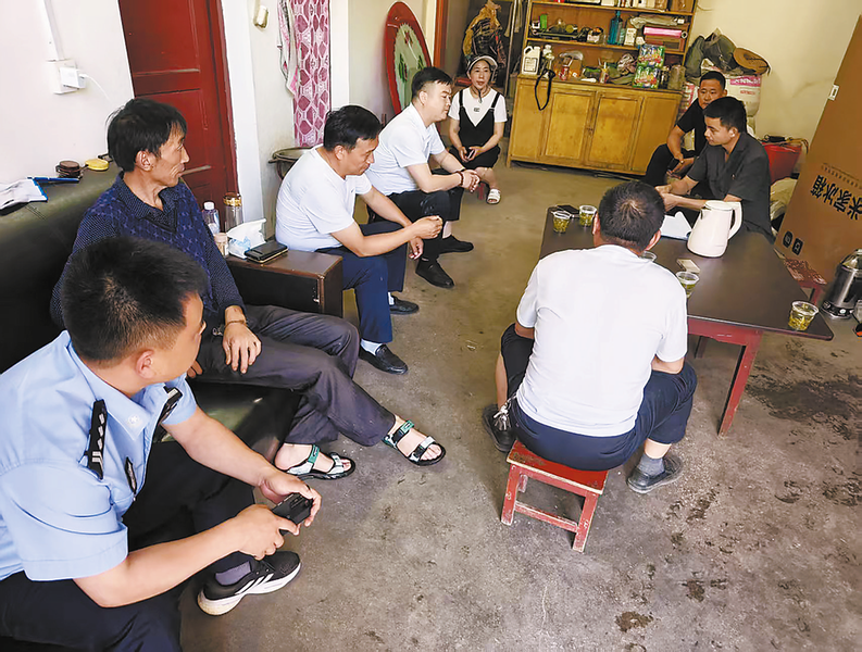 7月9日,木王法庭联合镇综治中心、林业站以及村委会在当事人家中调解纠纷。