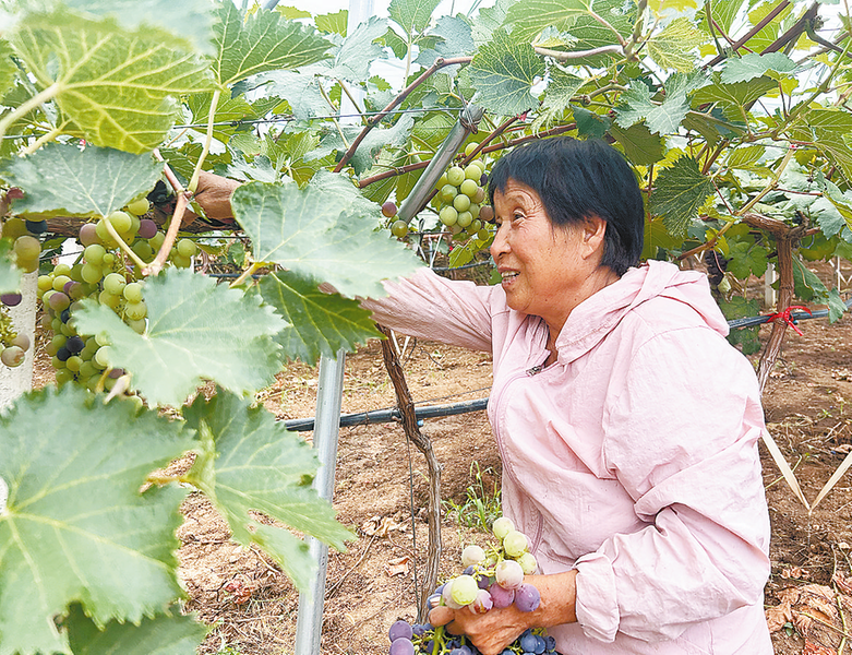 近日,丹凤县棣花镇许家塬村葡萄采摘园的400亩葡萄陆续成熟,包含阳光玫瑰、摩尔多瓦、夏黑等品种,主要销往商州、西安等地,采摘园全年带动十多名群众务工增收。图为8月1日,工人正在园内采摘葡萄。 (本报记者 肖 云 摄)