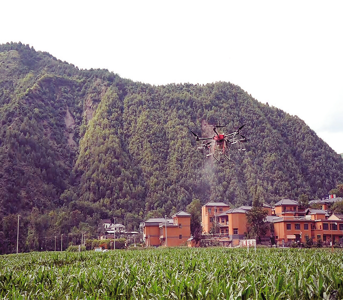无人机进行喷防作业本报讯 (通讯员 陈 阳 夏建玲)当前正值玉米灌浆关键期,前期干旱叠加近期连续高温,做好追肥和病虫害防治对保障玉米单产至关重要。为此,商洛市植保植检站联合山阳县农业技术服务中心抢抓农时,组织农技人员深入田间,开展玉米“一喷多促”技术示范,指导群众科学防治。