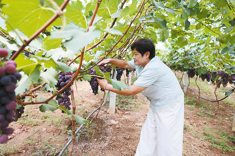 8月5日,在丹凤县商镇黑沟河村葡萄产业示范园内,果农抢抓葡萄成熟上市旺季在园内采摘新鲜葡萄。近年来,该村把葡萄产业作为发展重点,全村葡萄种植面积已达800多亩,带动种植户年增收突破2万元。