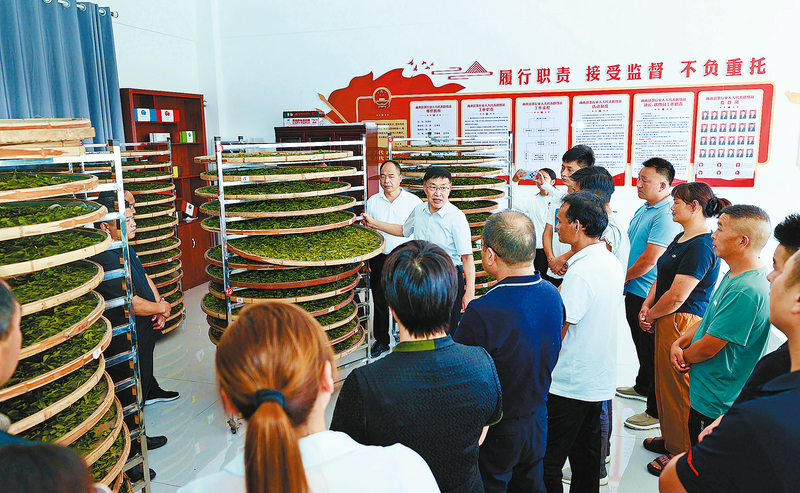 7月31日至8月3日,中国农业科学院茶叶研究所原副所长鲁成银到商南县试马镇沁园春茶树良种繁育基地、城关街道瓜山群体种茶叶基地等地,通过现场指导、绿茶加工技术实操培训、夏秋茶品鉴交流等方式,指导茶叶加工技术人员进一步提高制茶水平,为茶叶经营主体指明发展方向,助推我市茶产业高质量发展。 (本报通讯员 阮世喜 摄)