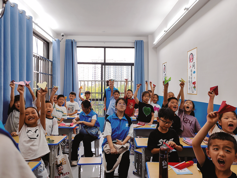 连日来,商洛学院“山河记忆 赤子赓续”暑期“三下乡”社会实践团通过实地参观、专访老兵、宣传调研等形式,开展暑期社会实践活动。图为实践团成员带领社区儿童开展红色主题活动。 (本报通讯员 谢 娜 摄)