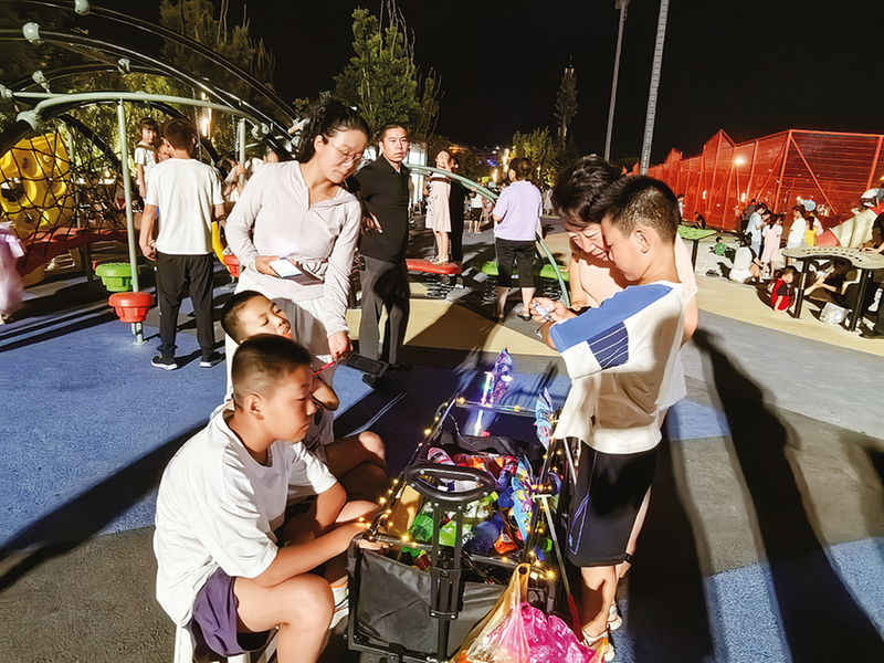 更值得关注的是,家长也愈发重视孩子自力更生能力的培养。在商州群众运动公园,热闹的人群中,一个装满各类饮品的手推箱前,五年级学生蔡天佑正大声叫卖,格外引人注目。“来这儿摆摊第三天了,第一天卖了60元第二天100多元,今天收入也不错。”蔡天佑大方地介绍着自己的生意经。一旁的妈妈满脸自豪:“以前总盯着孩子做题,现在觉得让他接触社会、学会自力更生才更实在。这几天摆摊,他自己学着算账、跟人沟通,还知道了赚钱不容易,比我们说多少道理都管用。”